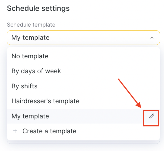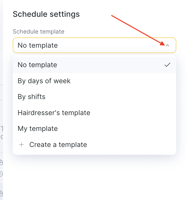 – Then, select the desired template and configure the parameters specific to the team member(s) in the schedule settings menu.