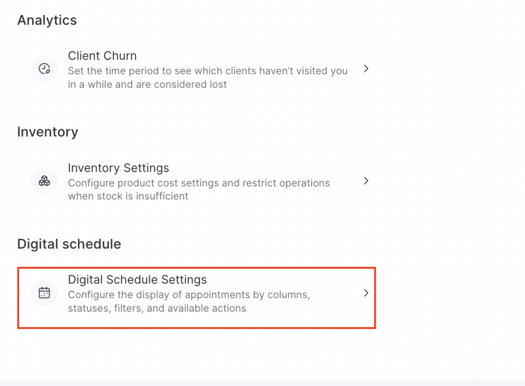 - Navigate to the Settings > Digital schedule> Digital Schedule Settings section.