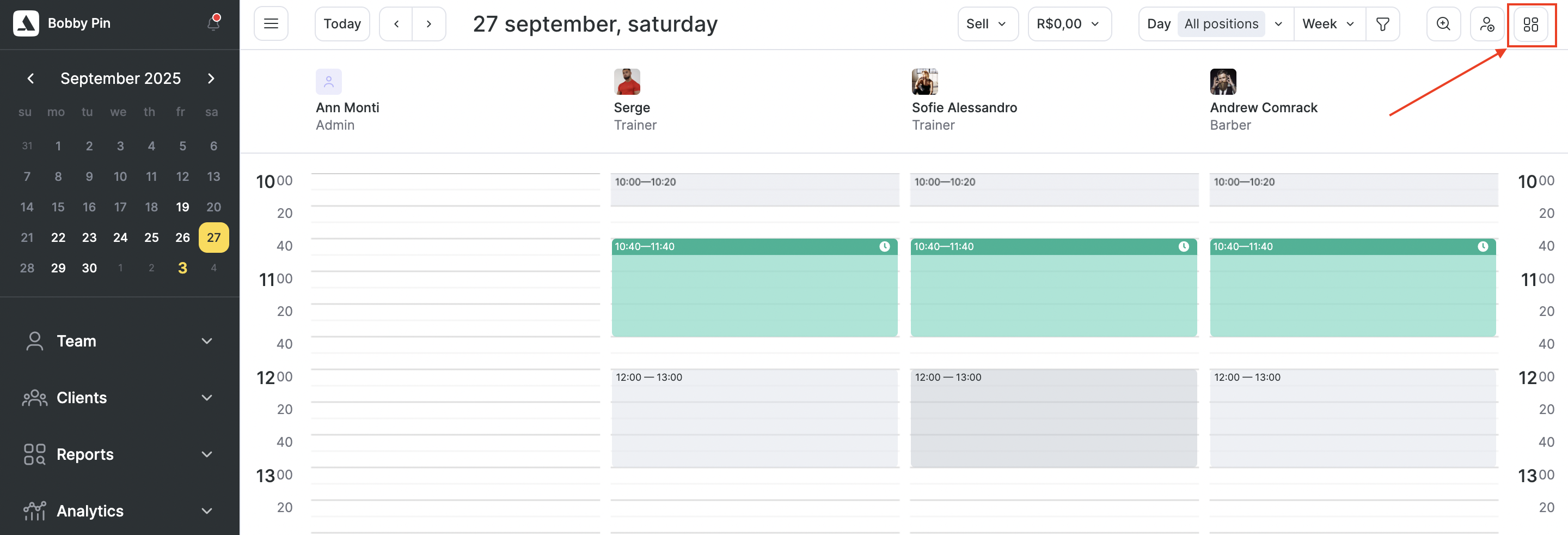 In the appointment calendar, click the button with the square icon in the top right corner.