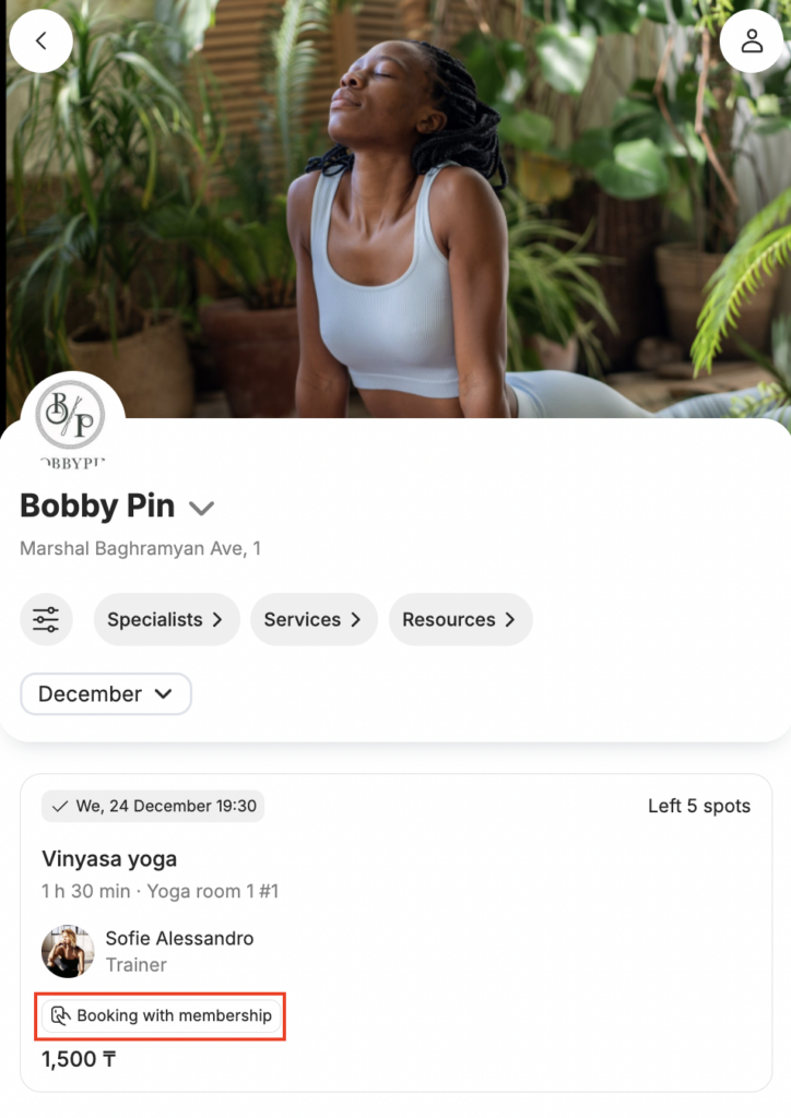 After a successful booking, in the widget account under My bookings and in the Altegio.me mobile app, the services will be marked with the Booking with membership tag.