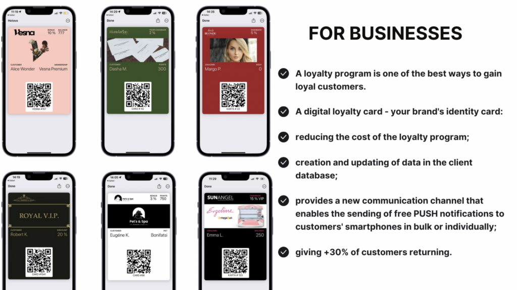 - Issue digital loyalty cards to your customers;