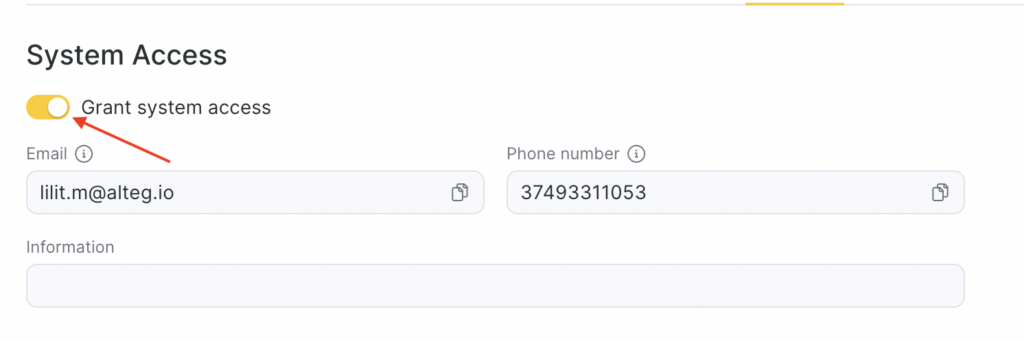 The Information tab in the Team section is where you store and manage all the essential details about each team member. This tab acts as the team member’s profile card — it’s the first place to visit when you want to view or update their personal and professional information.