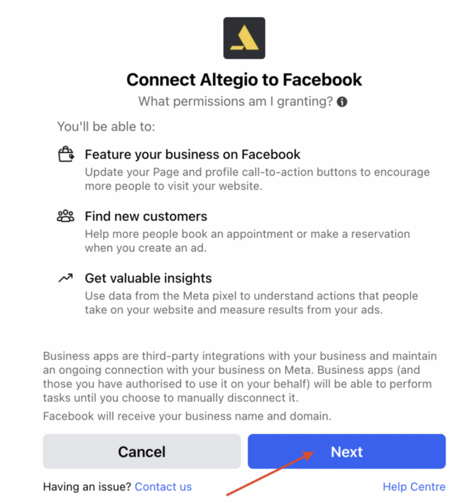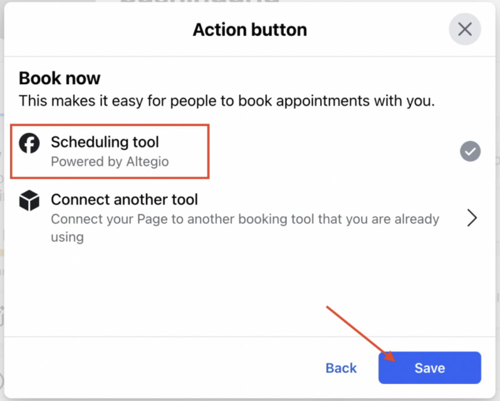 - Select whether you want to add the “Book Now” button to your Facebook or Instagram accounts. Select the accounts you want to run the integration for. Follow the onscreen instructions provided by Facebook. On the final step, confirm the account selection and proceed.