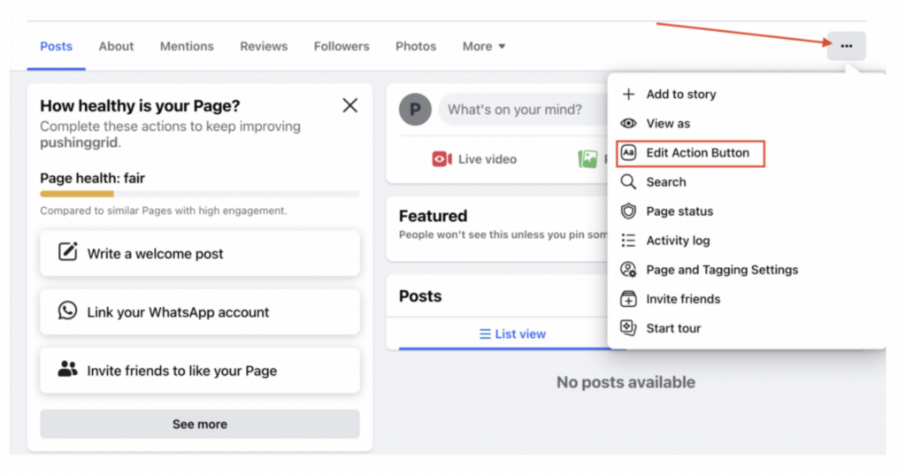 - Click on the three dotted menu on the right and select “Edit Action Button” from the drop down list.