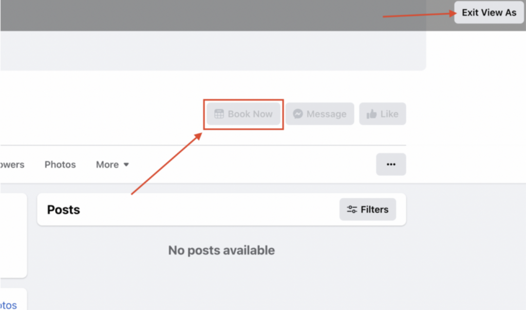 You will see the Book Now button from your page visitor’s perspective. Don’t forget to click the Exit View As button above to exit the mode.