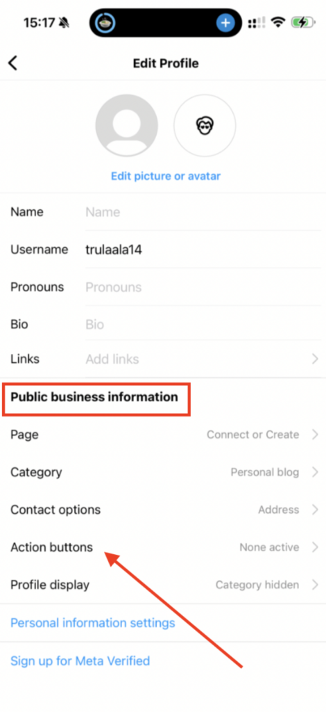 - On the Professional dashboard and select “Edit profile.” In this section, you will see options to add links, business information, and action buttons.