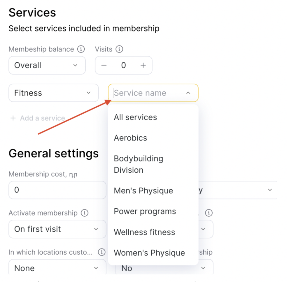 When creating a membership type for a separate type of service, select “Separate” balance; to create a membership type with the total number of visits for various services, select “Overall”.