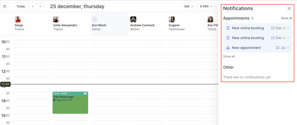 The Notification Center in Altegio is a centralized section that stores all notifications intended for the user. This feature ensures that users can easily access and manage their notifications without missing important updates. The Notification Center is located to the right of the location name in the location interface.