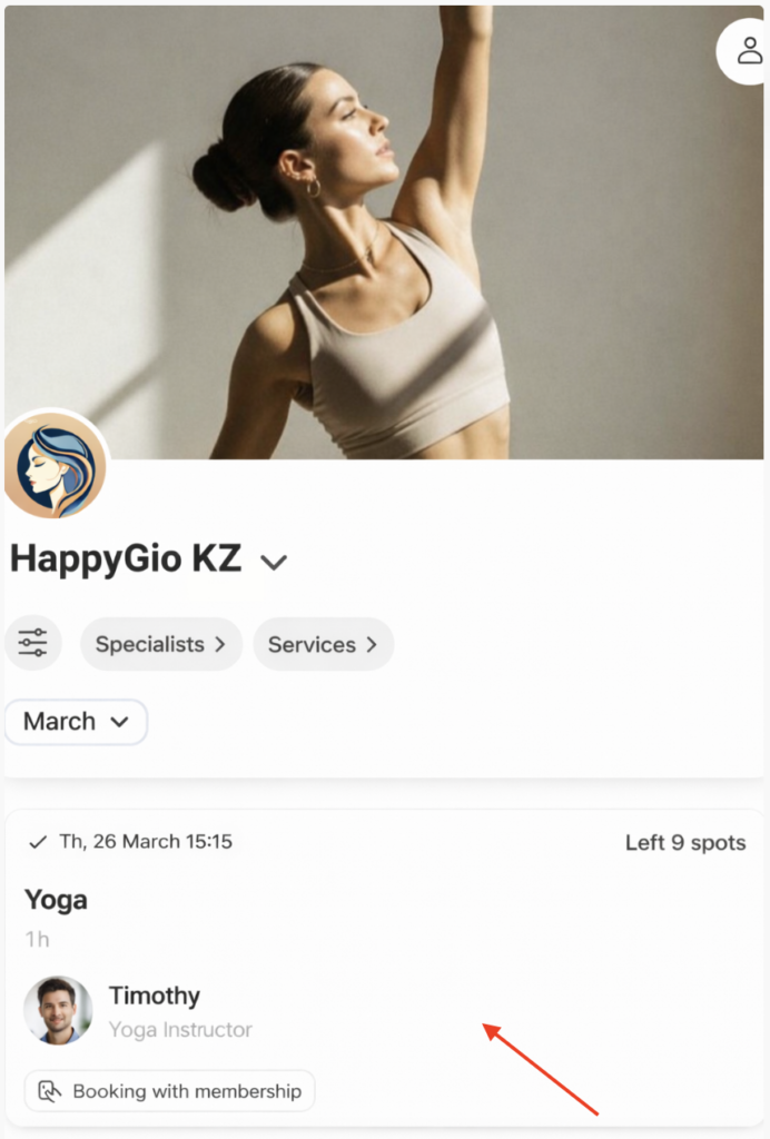 Some clients often sign up for several consecutive events. With the new “Book another” option, they can now do this much faster. For example, a studio has a “Yoga” event that is always run by team member Sofie on Tuesdays and Thursdays. A client will be able to book several weeks of this event in advance in one go.