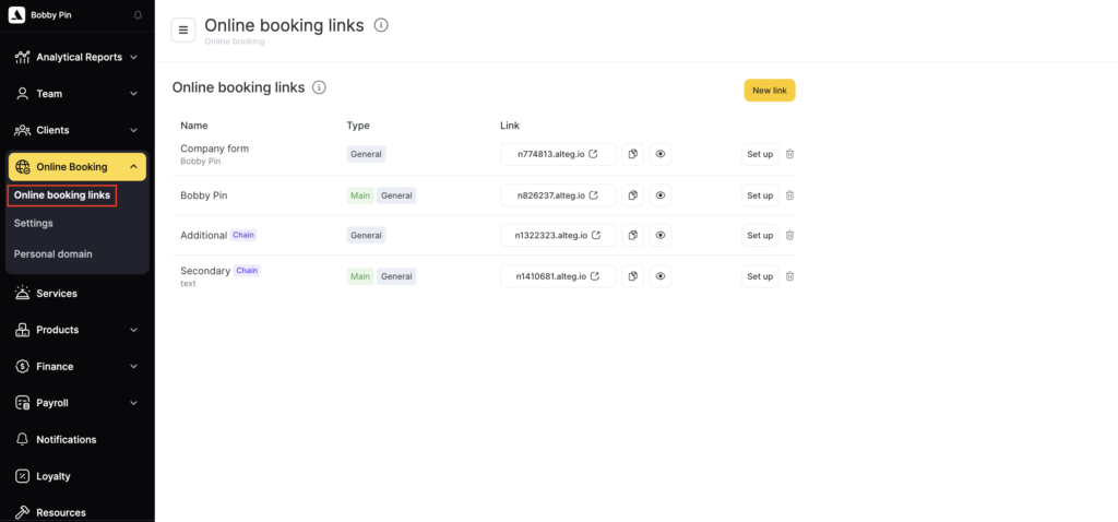 - Go to Online booking > Online booking links and click the required link name, or use the Set up button. If needed, create a new link for group booking.