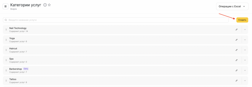 Or click the Create button in the upper-right corner and select Service package. If the category was not expanded in advance, the first category in the list will be selected by default. You can change it later when creating the package or in the package settings.