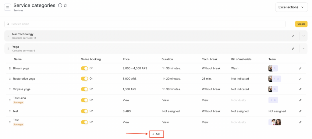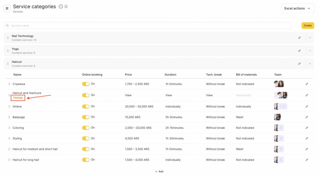 - Polishing fingernails + Manicure + Sellac: a sequential package, performed by one team member (or several). In this case, you can set a price for the entire package at once, for example with a discount — this discount will be visible to clients in online booking.