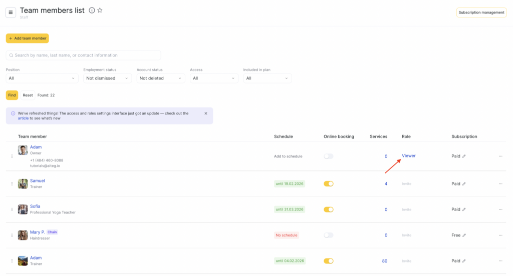 Altegio has updated how team member access works.
