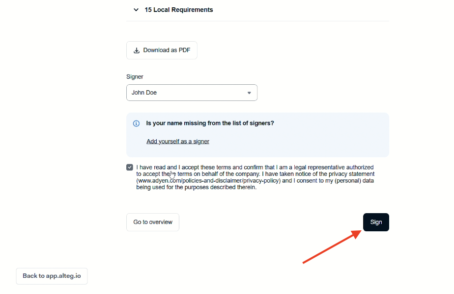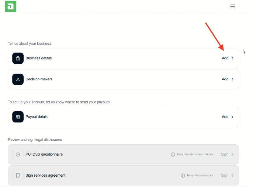 - You’ll be directed back to Adyen onboarding to complete the required updates.