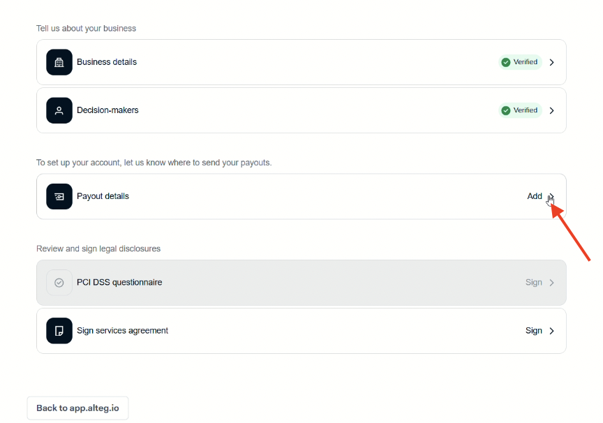 You can change business or payout details later. To do so, use Change your registration details (Altegio-side form) or Change your Adyen onboarding details (Adyen-side verified info).
