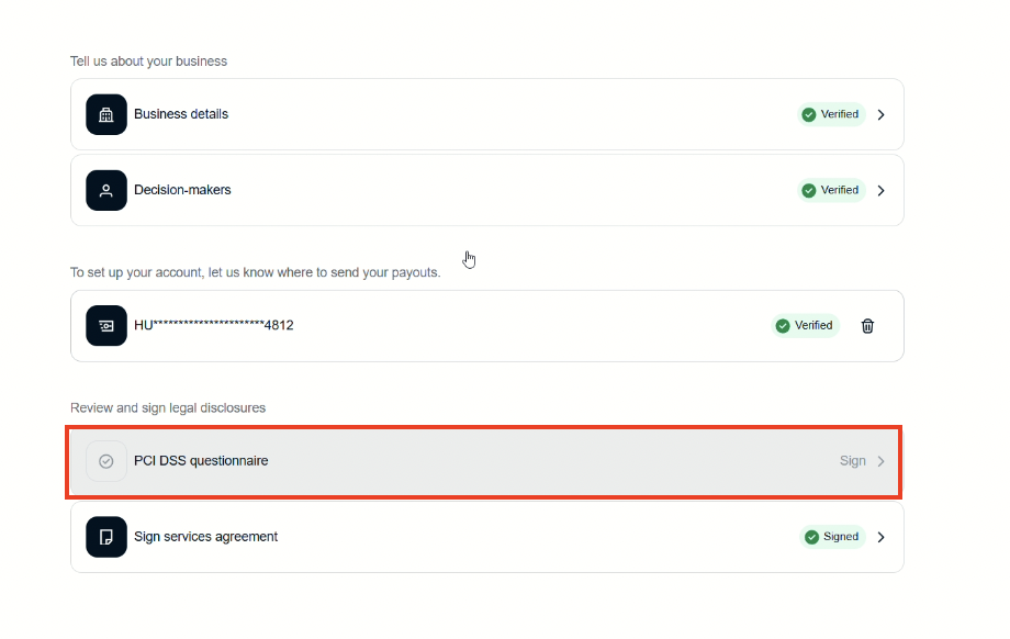 Verification time depends on the documents requested and how quickly they can be reviewed. If Adyen needs more info, you’ll see it in the onboarding checklist.