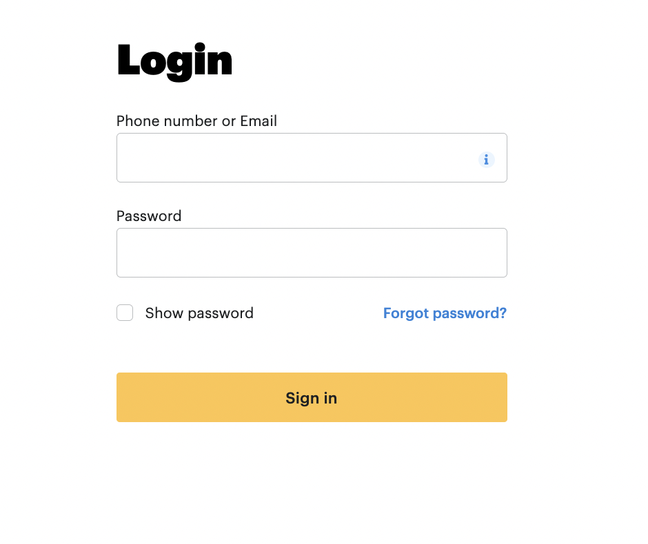 To log in to your account, enter your login credentials (your email or phone number with the country code) along with your password.