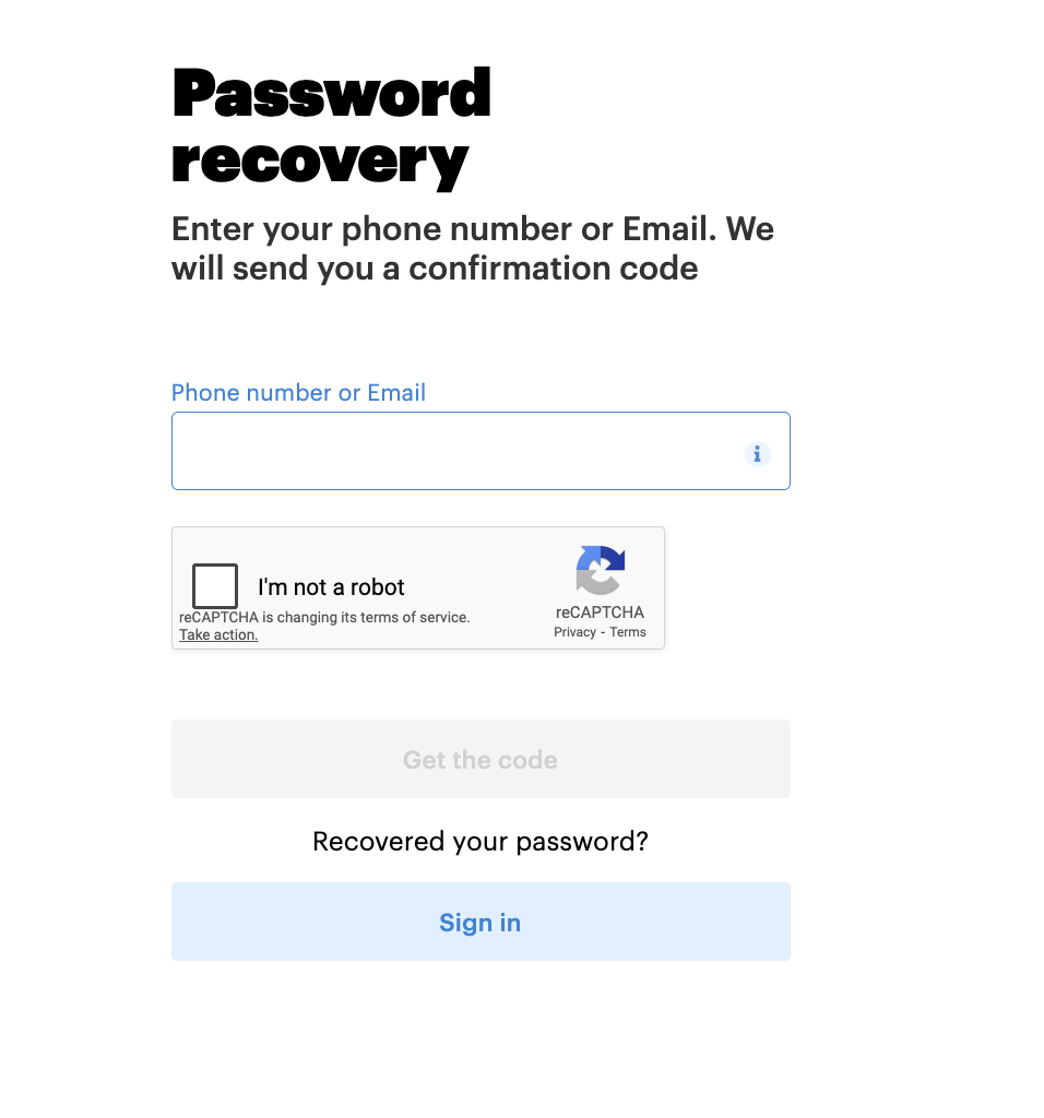 You can recover your password by going to https://app.alteg.io/signin/ and clicking “Forgot password?” then entering your email address or phone number with the country code (starting with the “+” sign).