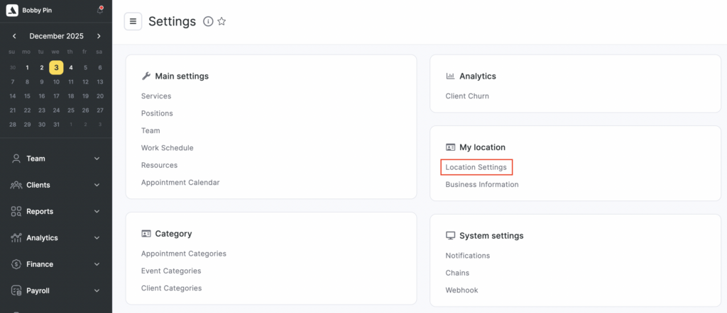 • Enter the Location name — it will be used inside the system and in the online booking widget.