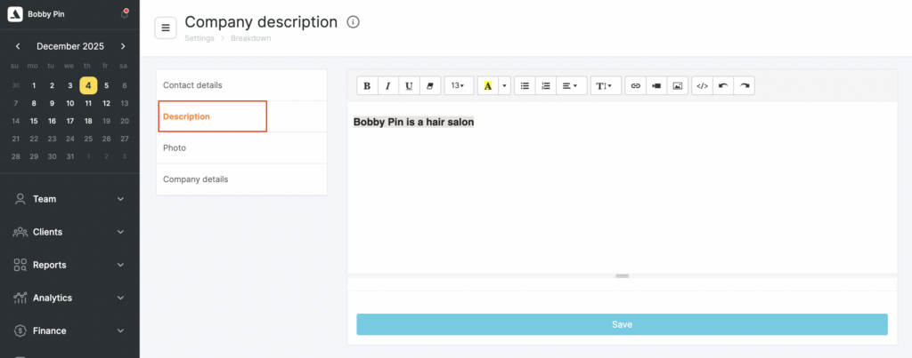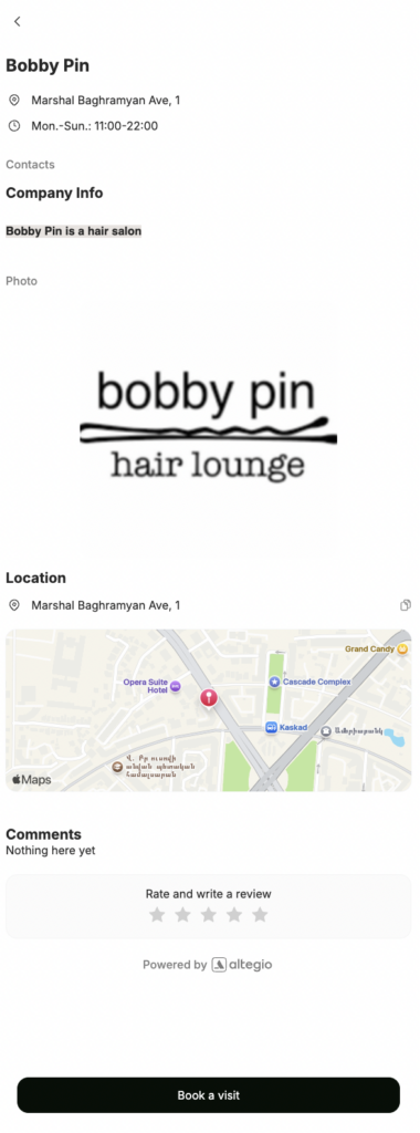 Your company description is an essential part of your online booking widget. It provides customers with important information about your business and helps them make informed decisions when booking with you. According to Altegio statistics, 24% of customers open this section, so it’s essential to convey your message effectively to capture their attention.