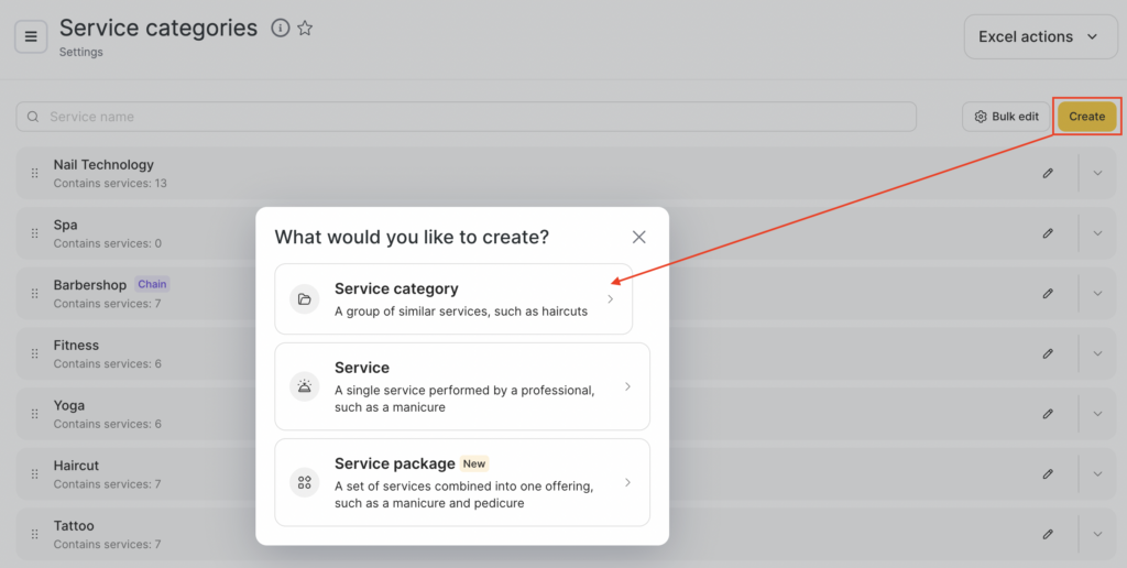 To add a new category, click the “Create” > “Service category” button. A new window will open where you need to enter information about the category.