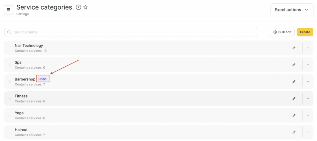 If a service category is marked with the “Chain” icon, it is a chain category and can only be edited at the chain level.