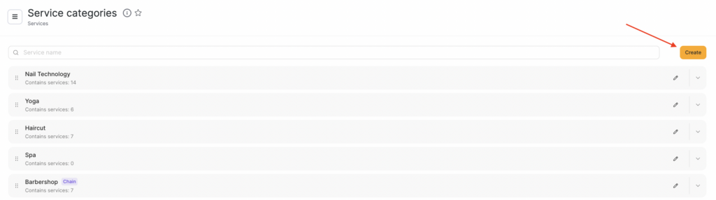 You can move services within the list inside a category. To do this, click the button with dots to the left of the service name and drag the row to the desired position. This order of services is shown both in the online booking widget and when creating a booking in the calendar.