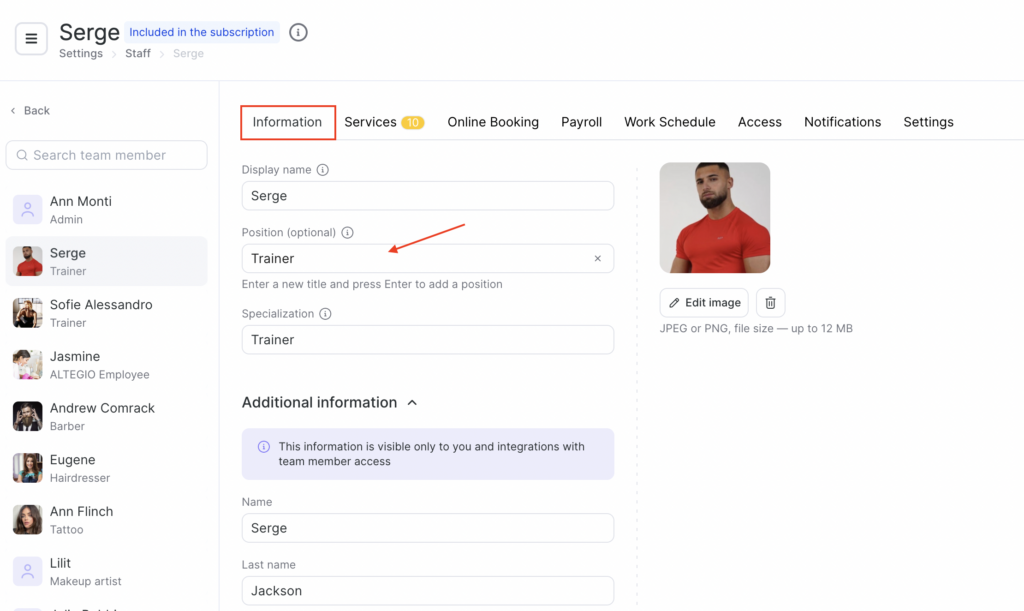 Where to specify team member’s position #