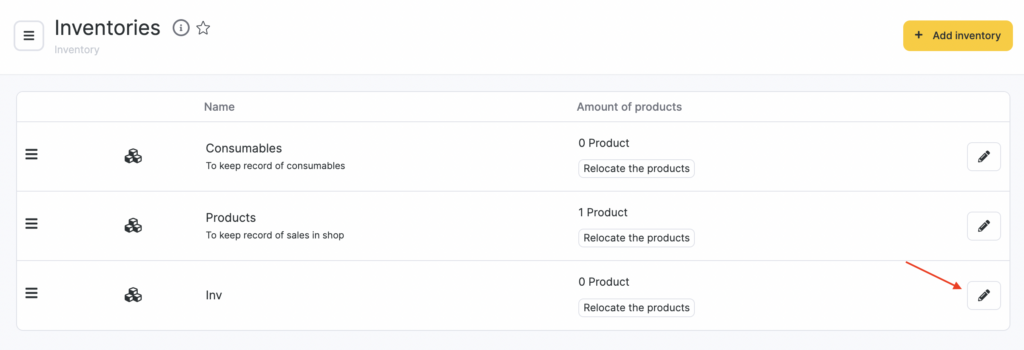 - Select an inventory by clicking its name or the pencil icon.