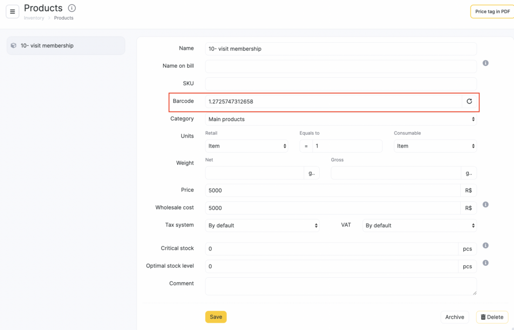 - Click in the field where you want to enter a barcode or add a product by barcode.