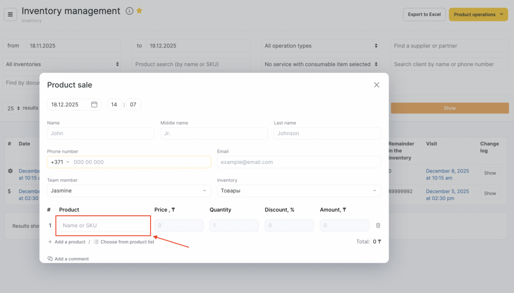 - Fill in the required fields: Date and time, Inventory, Product category, Comment.