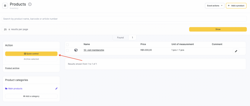 To edit product information in bulk, go to Inventory > Products and click Quick control.