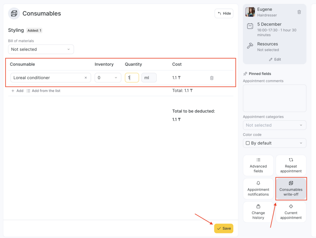 - Edit information about consumables by adding them using the Add a consumable button or adding multiple consumables at once using the Add from the list button.
