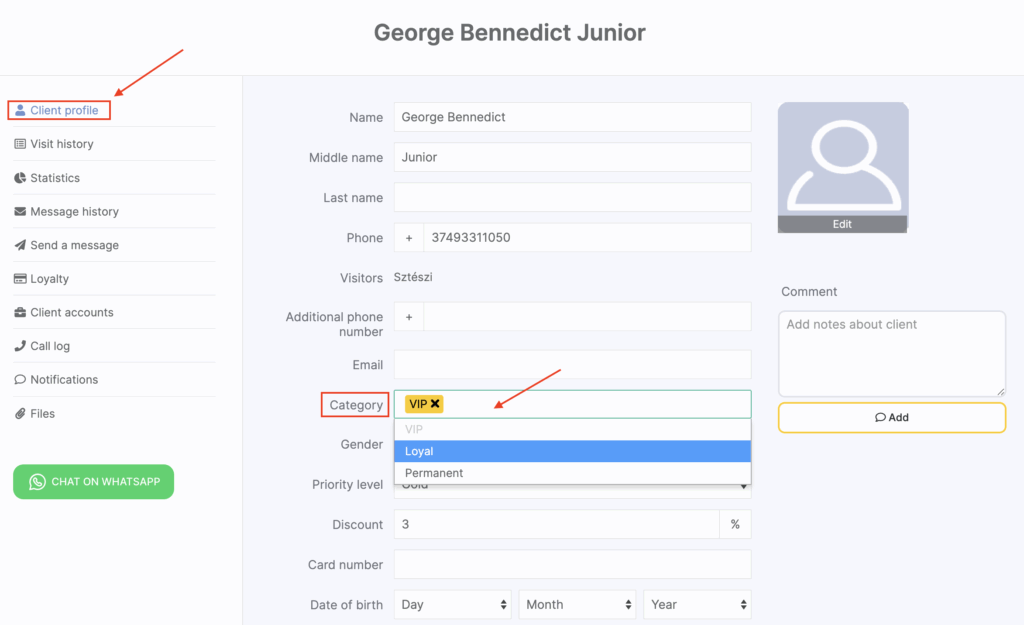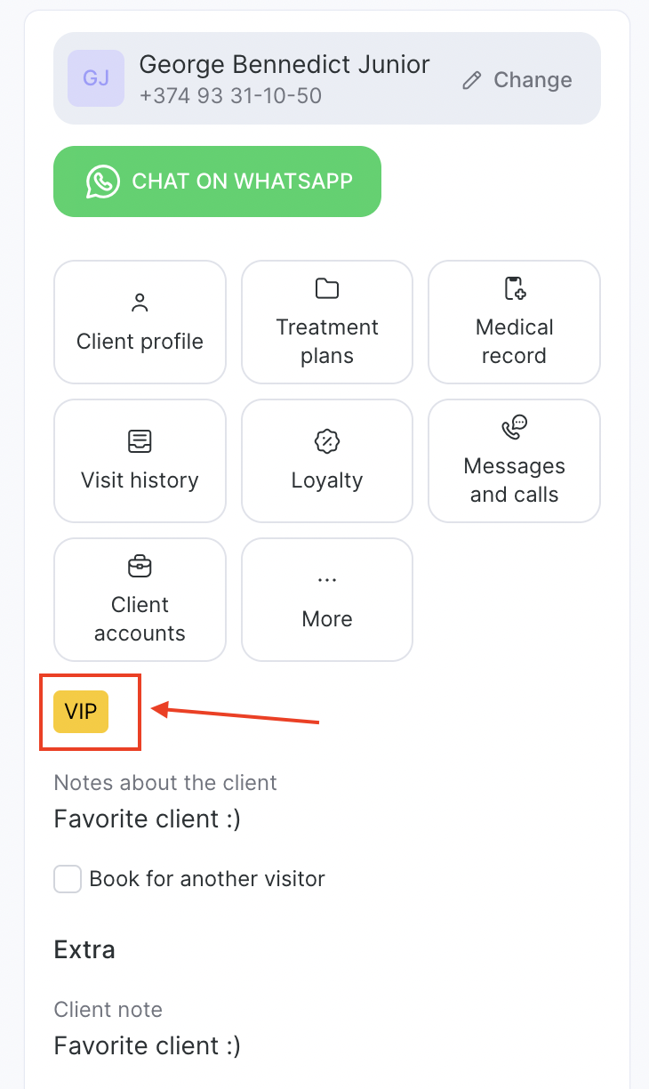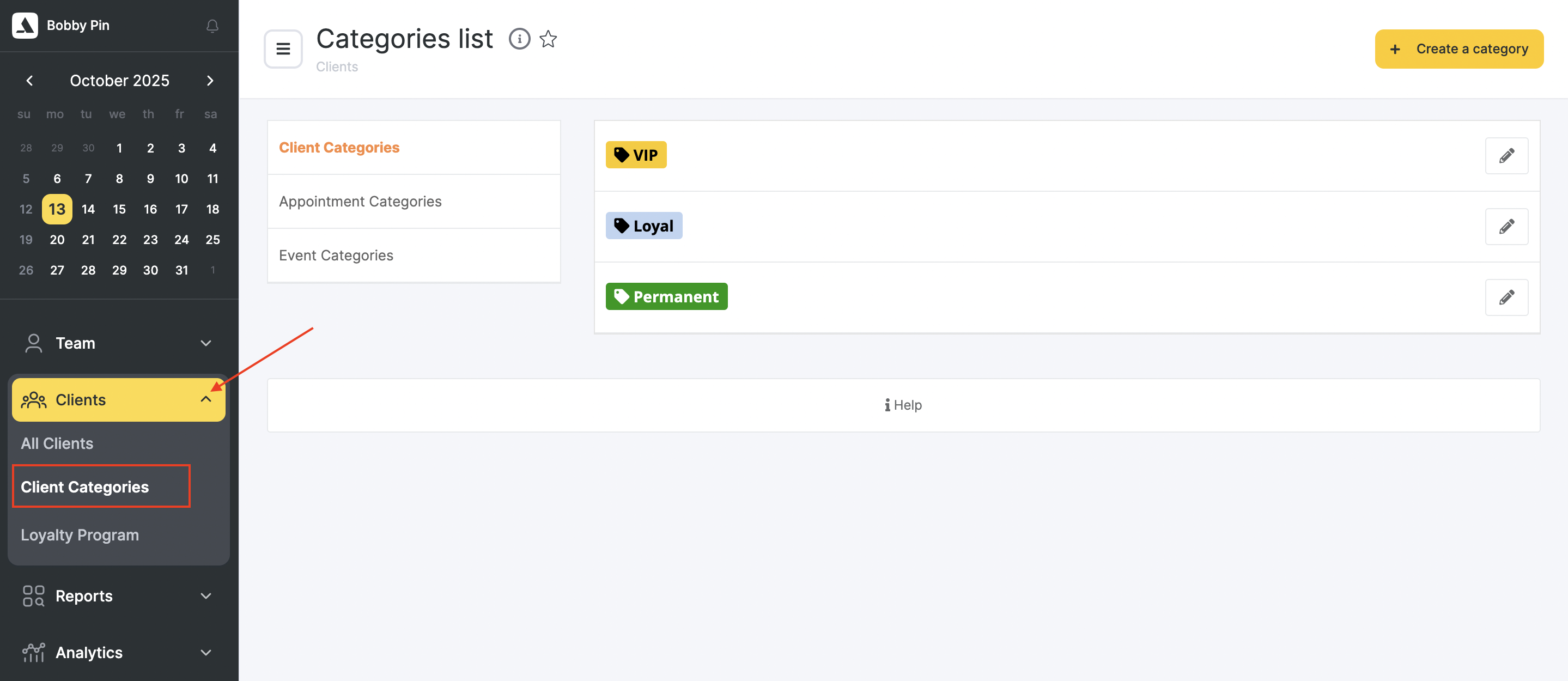 You can easily categorize clients in Altegio based on certain criteria by assigning them to different categories. Categories are represented by colorful tags with customizable names that make it easy to label and organize clients. By default, three categories are already created for you: Permanent, Loyal, and VIP.