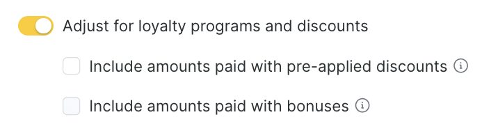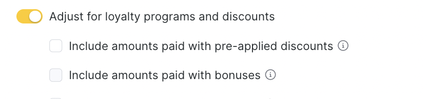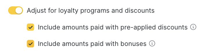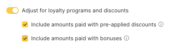 If the adjustment is not enabled, the discount amount, as well as the part paid with bonuses, gift cards, or memberships, is deducted from the payroll calculation base.