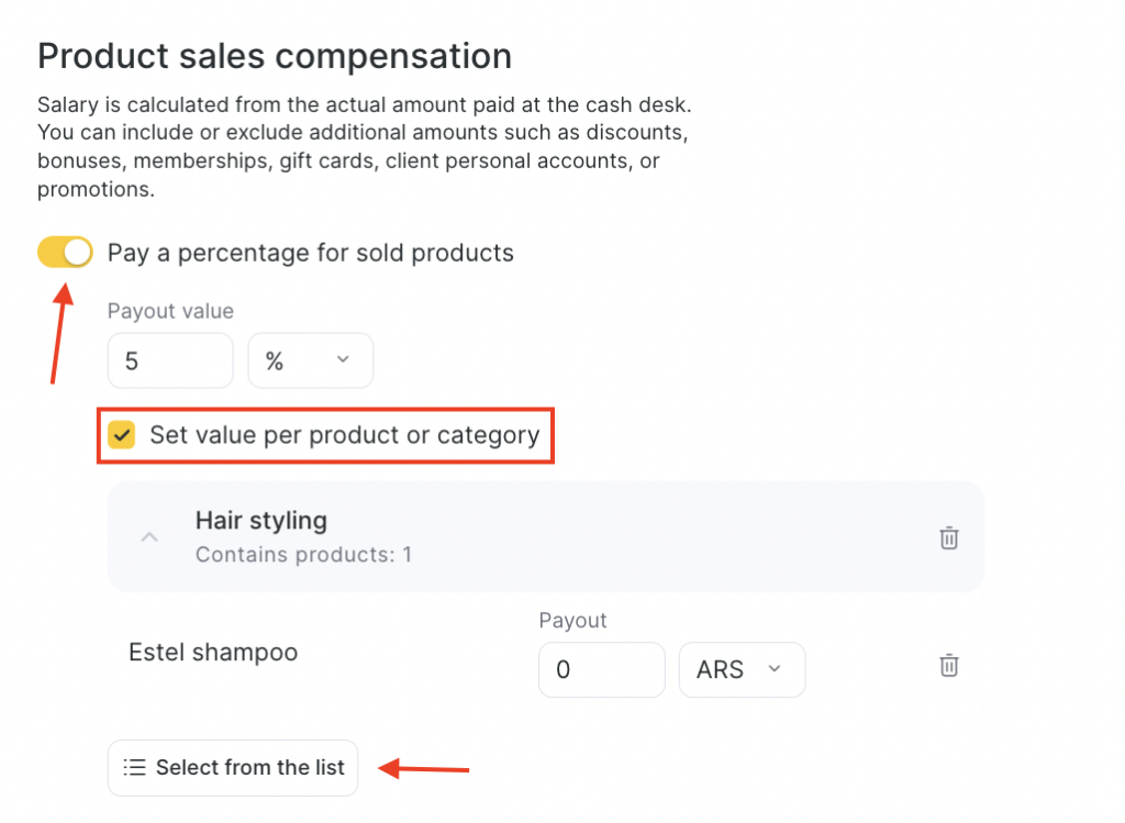 - Enable Payout for sold products if employees receive commission from retail product sales.