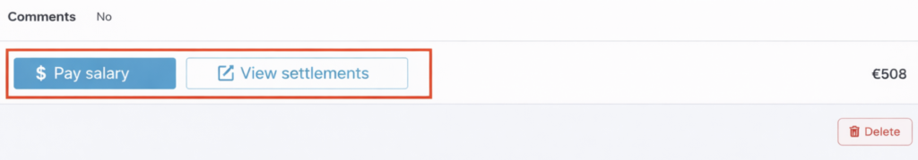 When you open the statement details from the settlements page, you will be able to Export the statement to Excel , Pay salary, View settlements, or Delete the statement .