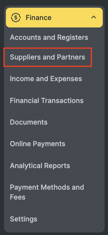 To get started, navigate to the Finance – Suppliers and Partners section.