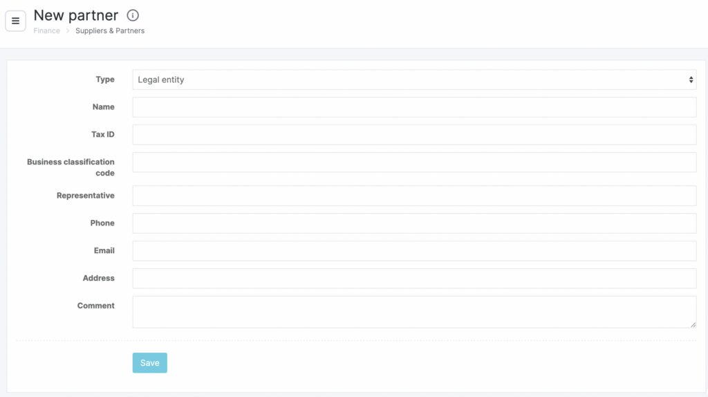 - Go to Finance > Suppliers and Partners.