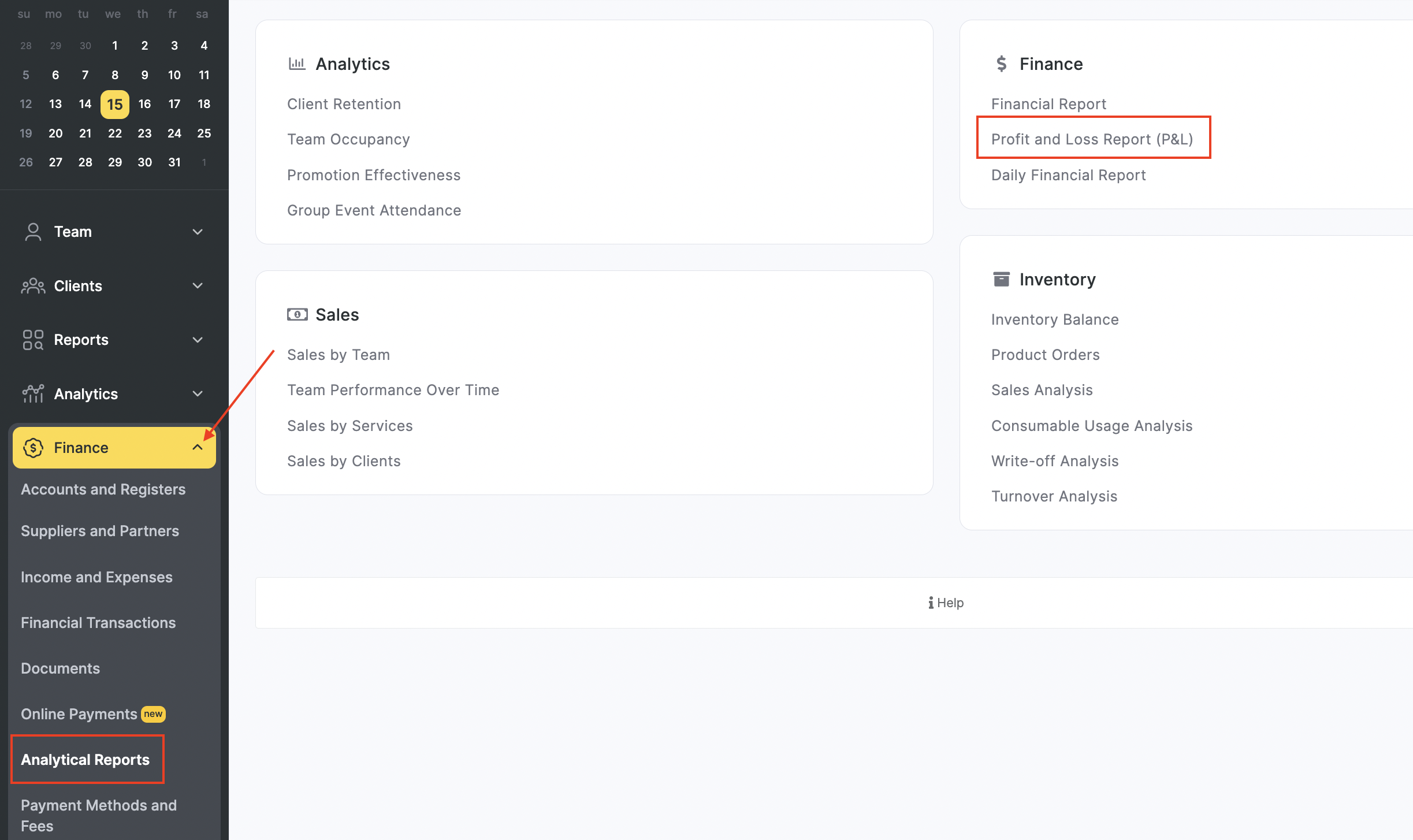 To start working with the report go to the Finance – Analytical Reports – Profit & Loss Report section.