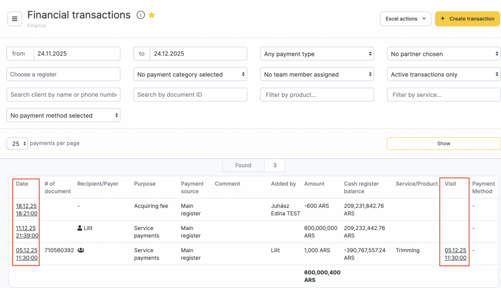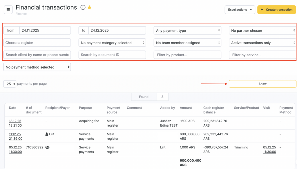 - Navigate to the Finance > Financial Transactions section in your Altegio account.