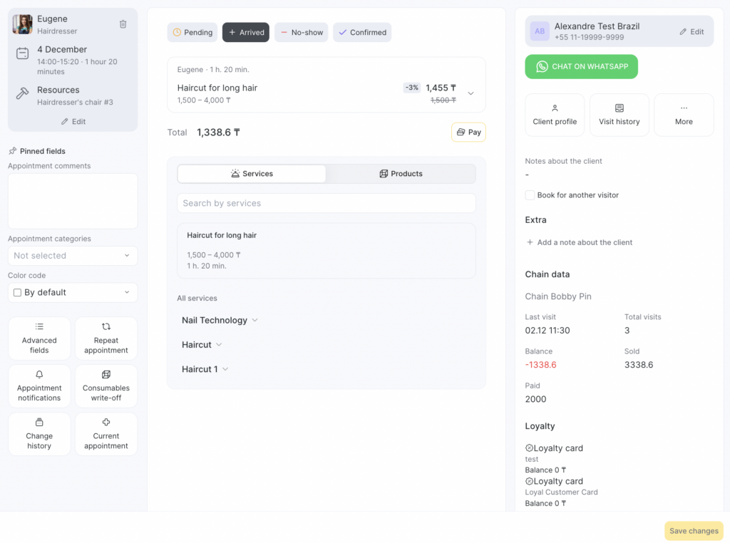 When an appointment is created by an receptionist, they can select in the appointment card any resources linked to the service and any available number of instances of each resource.
