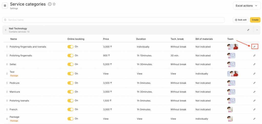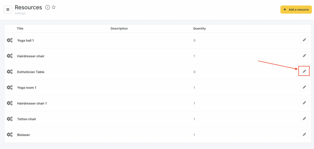 - Click the name of the service you want to link a resource to, or the edit button for that service.