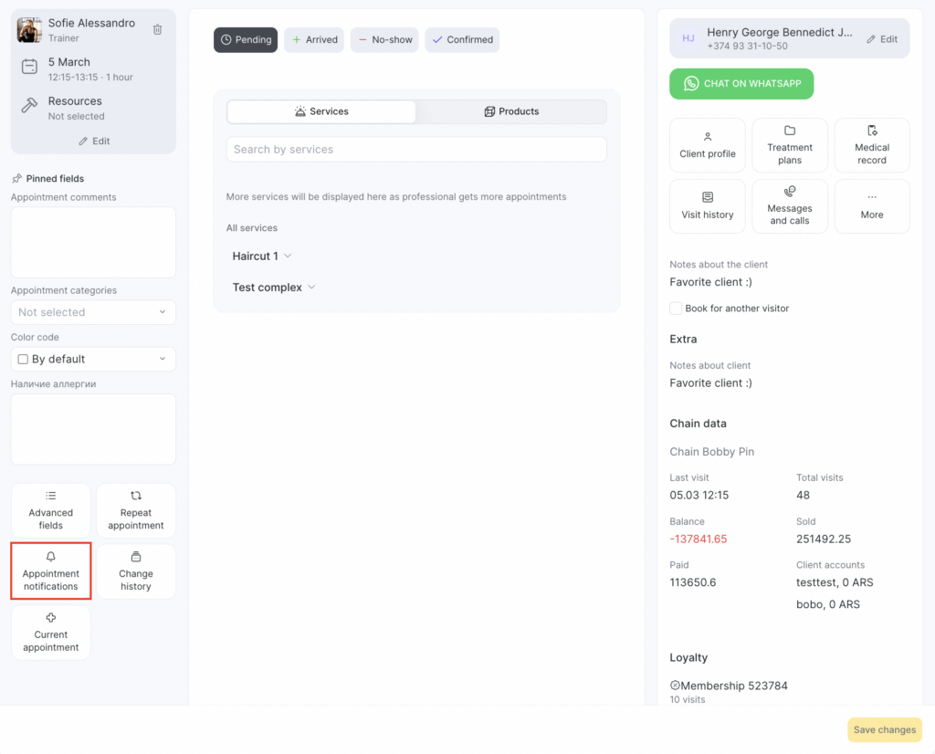 Even if sending this type of notification is disabled, you can still send an SMS with the appointment details individually.