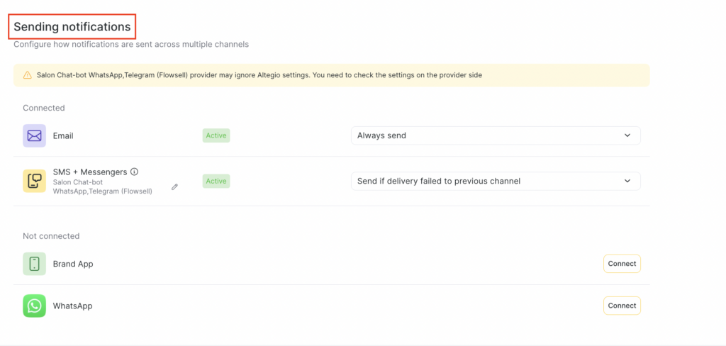 - Next, configure how notifications will be sent via multiple channels. More details about multi-channel notification scenarios are available in the article. Available sending channels: