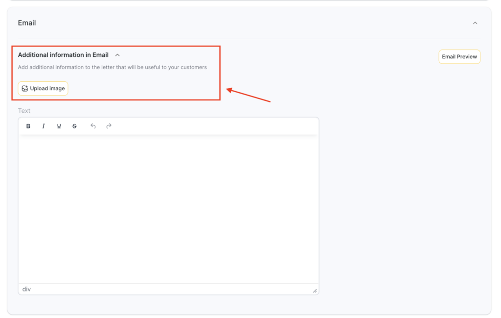 - For the Email channel, editing the template is not available, but you can add additional information. To do this: