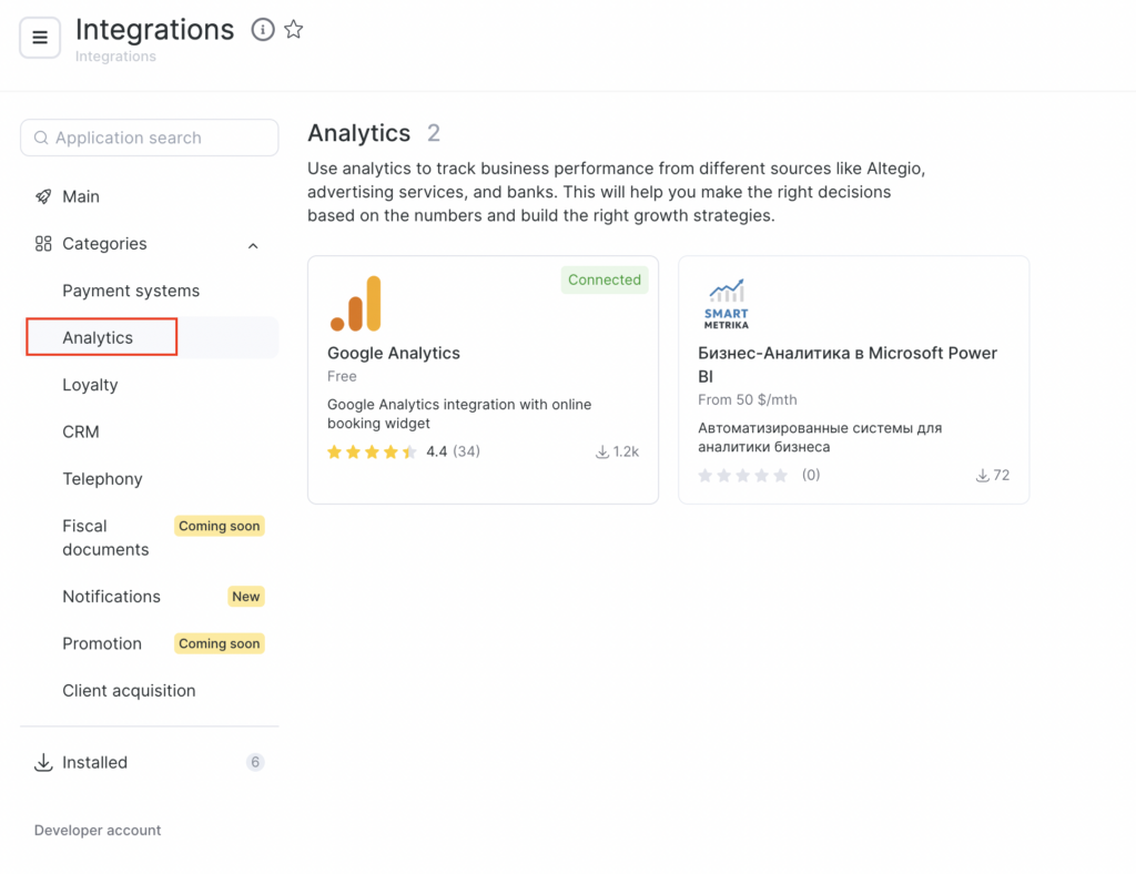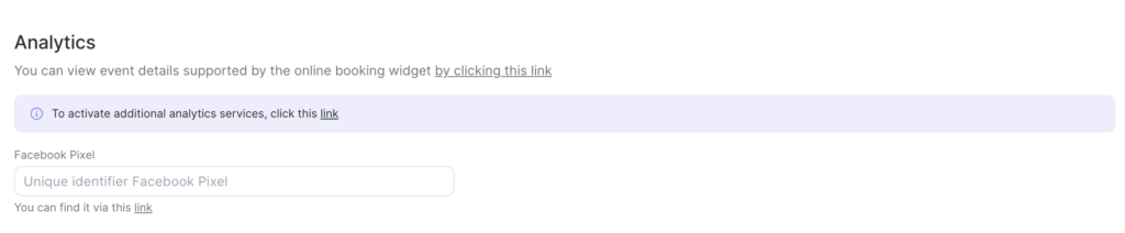 Analytics from the Altegio online booking form can go to the analytics services in the company’s account. Analytics services help to monitor the number of visitors on the site or service, filter them according to many different criteria, and track user actions.