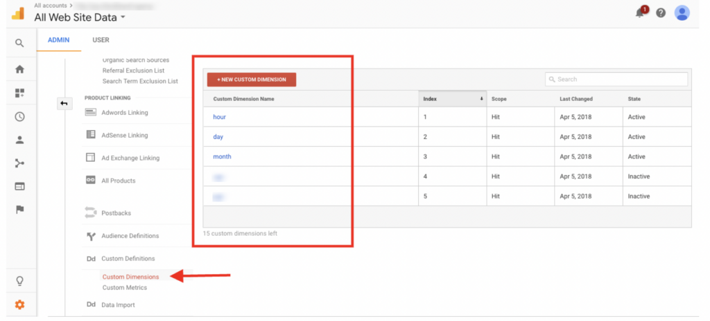 - In the Property column, click Custom Dimensions > Custom Dimensions.