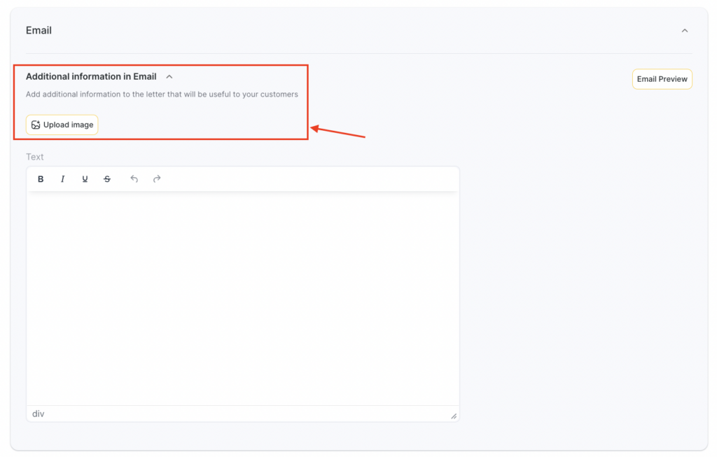 - For the Email channel, editing the template is not available, but you can add additional information. To do this: