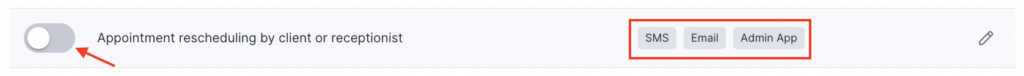 - In the Team member section, select Appointment rescheduling by client or receptionist by clicking the notification name or the pencil icon.